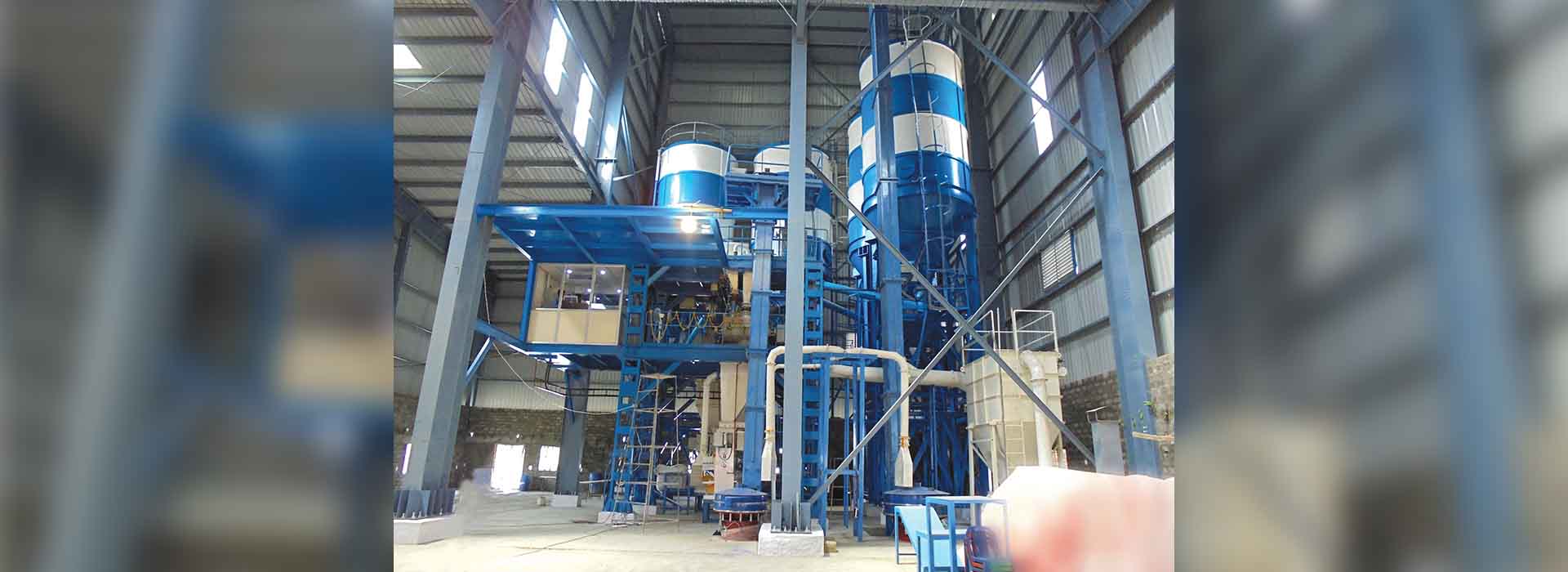 The raw material weighing section– As per the predefined recipe partially weighed material from individual weighers was transferred into a single holding hopper (located at the top level of structure) via. Bucket elevator Also at the same level, various additives are batched in additive weigher. (located at the top level of structure)